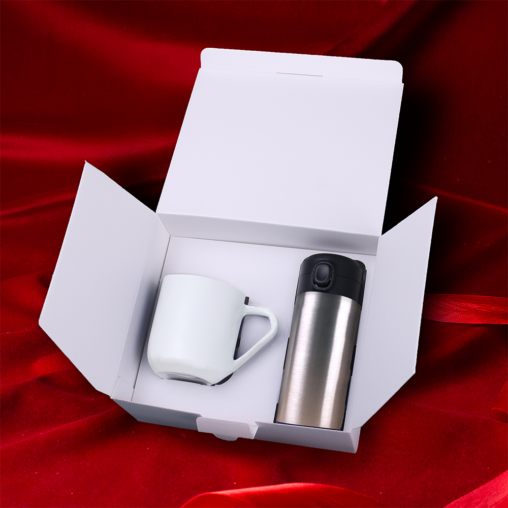 Perfetto per ogni tipo di avventura – il mug termico personalizzabile Vega in coppia con l’impressionante tazza in porcellana Impress. Il set è confezionato in un packaging ecologico dedicato e completato con una fascia elegante e personalizzata. DIE DARGESTELLTE VERZIERUNG DIENT NUR ZUR VERANSCHAULICHUNG UND IST NICHT IM PRODUKTPREIS ENTHALTEN. DAS SET IST IN EINER SPEZIELLEN SNOWY-VERPACKUNG MIT EINER AUSGEWÄHLTEN VERZIERUNGSOPTION ERHÄLTLICH.