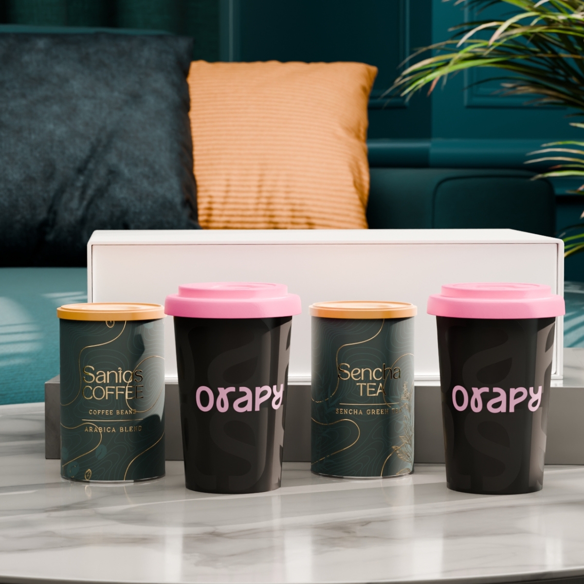 Das Set mit den mobilen Freedom-Bechern verbindet Mobilität mit subtilem Branding. Im Inneren befinden sich außerdem ausgewählter „Santos Coffee“ und „Sencha Tea“ in eleganten Dosen. Das Ganze ist in einer exklusiven, schneeweißen Verpackung mit Magnetverschluss verpackt. Der Deckel ist in folgenden Farben erhältlich: Weiß, Orange 021C, Cool Gray 7, Rot 200C, Marineblau 294C, Braun 4695C, Schwarz, Rosa 4064C, Blau 2144C, Eukalyptus 5493C, Desert Sand 2310C.